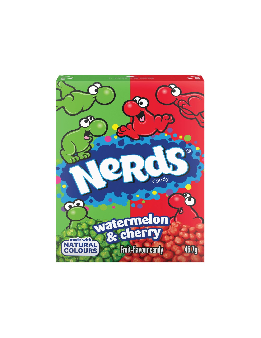 Ingredientes: Dextrosa, azúcar, acidulante (ácido málico), jarabe de glucosa, aromas de sandía y cereza, espesante (goma arábiga), agente de recubrimiento (cera carnauba), concentrado de plantas y vegetales (rábano y espirulina), colorante (curcumina).