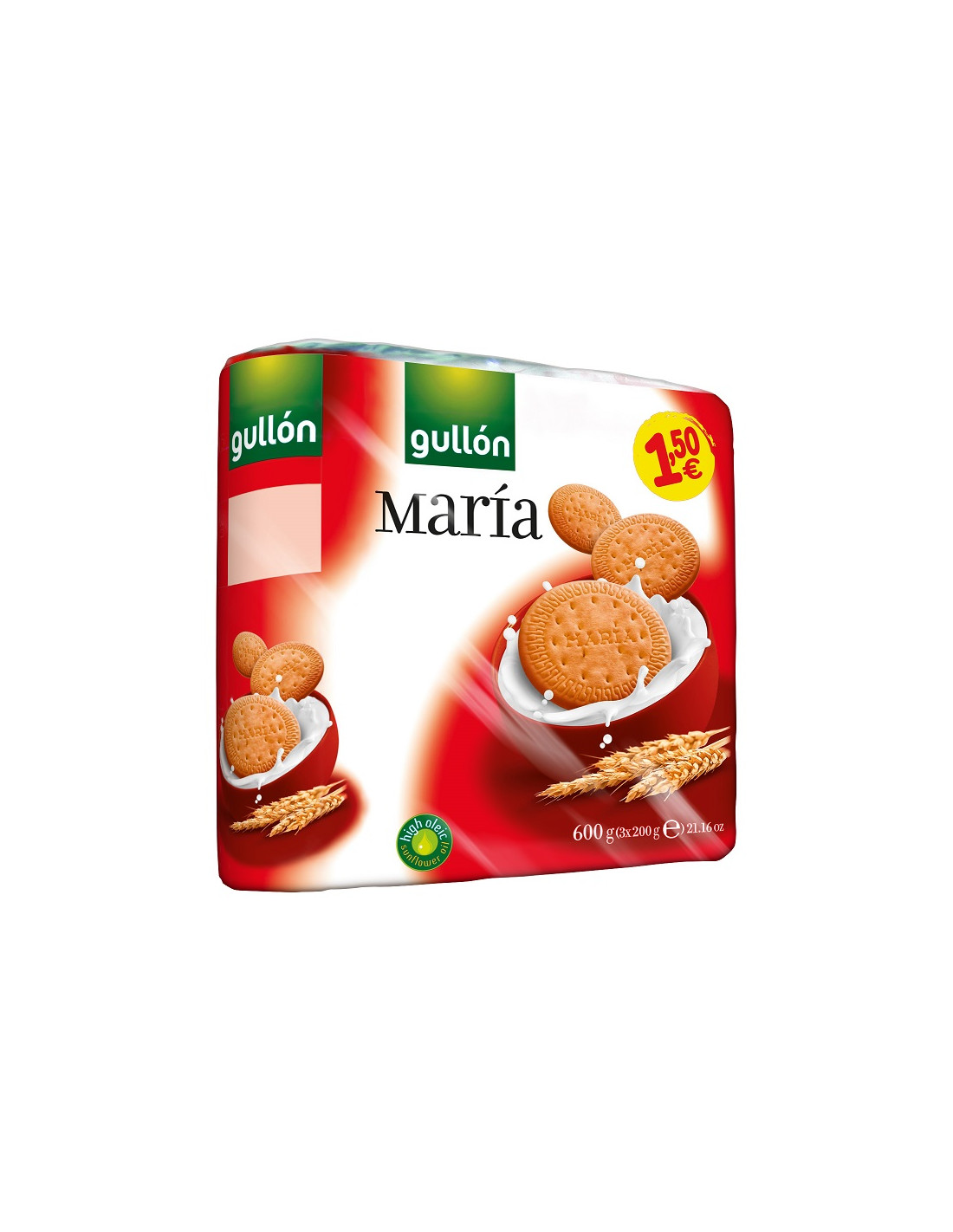 Ingredientes: harina de trigo 81%, azúcar, aciete vegetal (girasol alto oleico) 9%, jarabe de glucosa y fructosa, suero lácteo en polvo (leche), gasificantes (carbonato ácido de sodio, carbonato ácido de amonio), sal, emulgente (lecitina de soja, antioxidante (metabisulfito sódico), aroma. Puede contener trazas de granos de sésamo y mostaza.