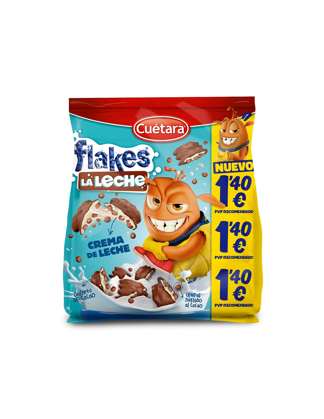 Ingredientes: harina de TRIGO, relleno de LECHE (28%) [azúcar, aceites y grasas vegetales (girasol, coco), LECHE desnatada en polvo (3,7%), LACTOSA, MANTEQUILLA concentrada (2,0%), emulgente (lecitina), aroma (LECHE), sal], azúcar, cereal inflado al cacao (9,6%) [harina de arroz, sémola de maíz, azúcar, cacao desgrasado en polvo, jarabe de glucosa, sal, aroma], aceite de girasol alto oleico, jarabe de glucosa y fructosa, cacao desgrasado en polvo (1,3%), sal, emulgente: lecitina (contiene TRIGO), colorante: E150d (contiene SULFITOS), gasificantes (carbonatos de amonio y carbonatos de sodio), aroma, agente de tratamiento de la harina (METABISULFITO sódico). Puede contener FRUTOS DE CÁSCARA, MOSTAZA, SOJA, HUEVO.