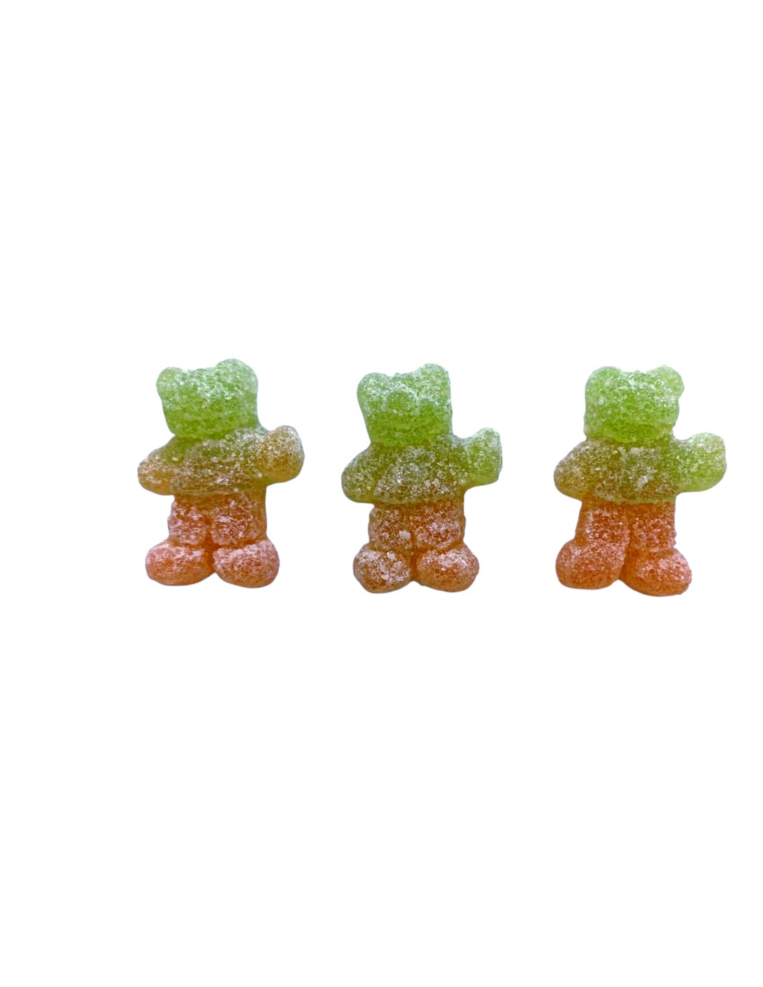 Ingredientes: azúcar, jarabe de glucosa, agua, gelatina, ácido cítrico: E330, ácido tartárico: E334, sabor cola manzana, colorante: E161b, E133, E120.