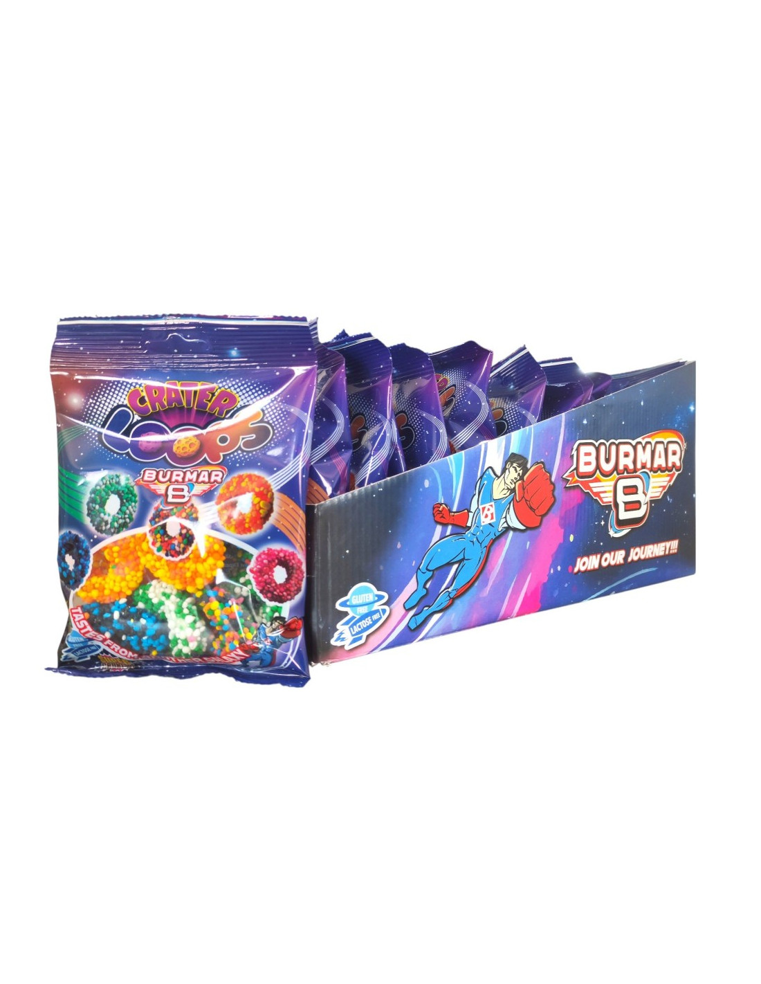 Ingredientes: azúcar, jarabe de glucosa, agua, harina de arroz, gelatina, acidulantes: ácido málico (E296), ácido cítrico (E330), estabilizante: malato ácido de sodio (E350ii), agente de recubrimiento: goma arábiga (E414), aromas, colorantes: tartrazina (E102), carmoisina (E122), rojo allura AC (E129), azul brillante FCF (E133), carbón vegetal (E153).