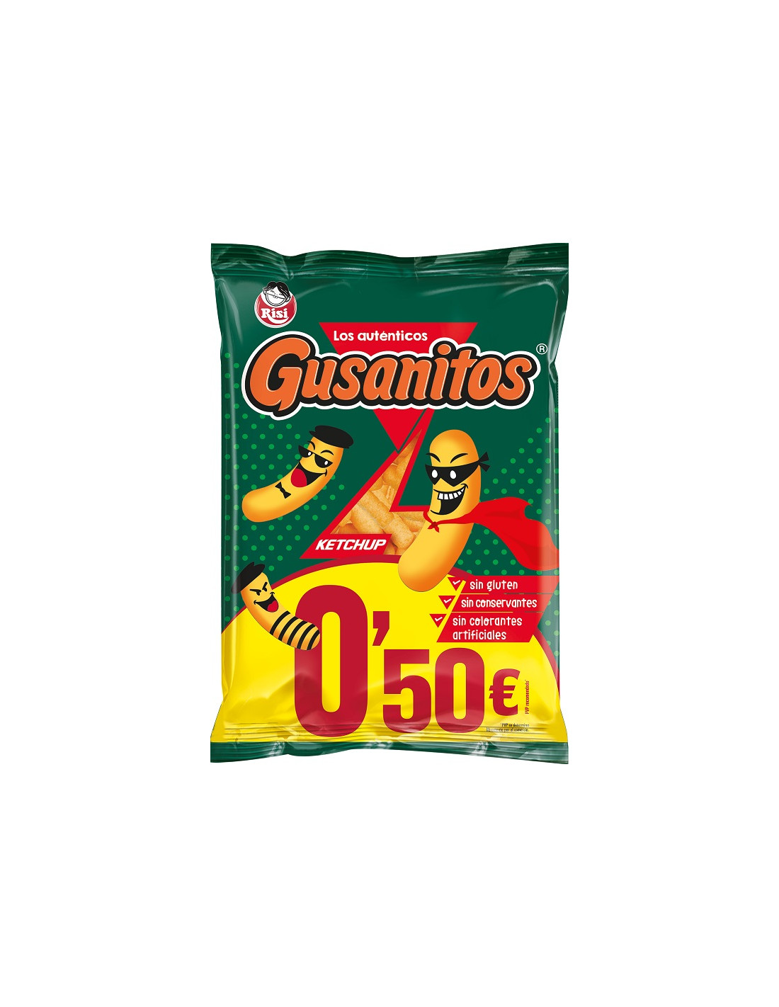 Ingredientes: sémola de maíz, aceite de girasol (18.4 %), aroma de ketchup [azúcar, extracto de levadura, fructosa, tomate, cebolla y ajo en polvo, aroma, acidulante (ácido cítrico y málico), pimentón y colorante (extracto de pimentón)], y sal. Puede contener proteína de leche y mostaza.